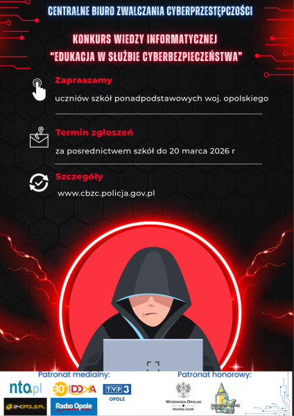 Policjanci Wydziału Centralnego Biura Zwalczania Cyberprzestępczości w Opolu zapraszają do wzięcia udziału w II edycji konkursu „Edukacja w służbie cyberbezpieczeństwa”.